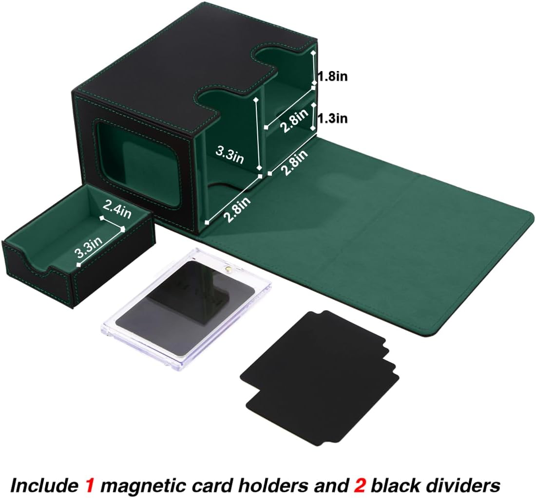【Patented Design】Our innovative window design is specifically tailored for EDH Commander players and is versatile enough to accommodate Leader cards. Securely store your Commander/Leader card in the included 35PT one touch card holder, and proudly display it in the specially designed card slot. This unique feature ensures that you can quickly identify which deck is inside each card box. It can also prop itself up using its own lid, making it convenient for easy access.